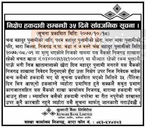 Published by Kumari Bank Ltd (KBL) Abhiyan News Paper on 2077-10-18