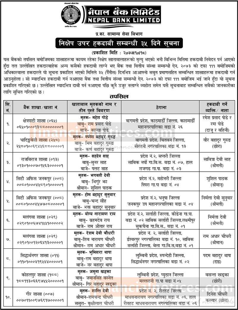 निक्षेप उपर हकदावी सम्बन्धी ३५ दिने सूचना