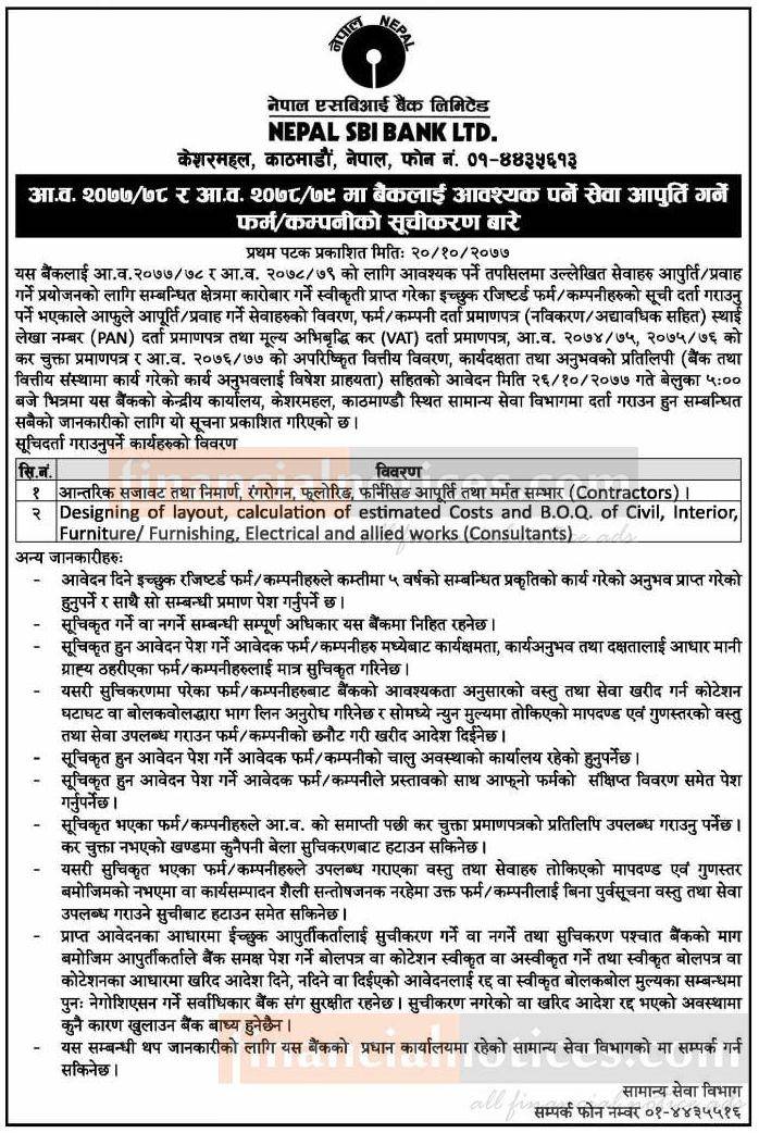 बैंकलाई आवश्यक पर्ने सेवा आपुर्ति गर्ने फर्म÷कम्पनीको सूचीकरणबारे सूचना