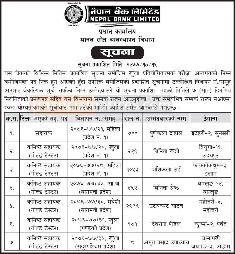Published by Nepal Bank Limited Official Page on 2077-10-20