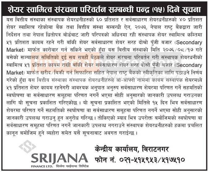 Published by Srijana Finance Annapurna Post on 2077-10-22