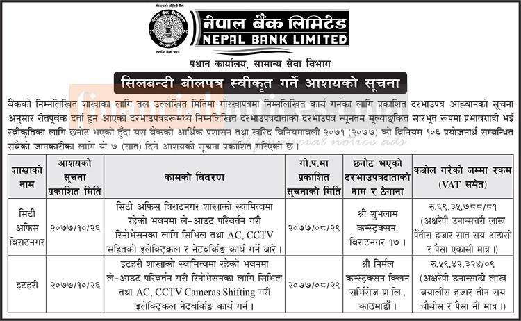 Published by Nepal Bank Limited Official Page on 2077-10-26