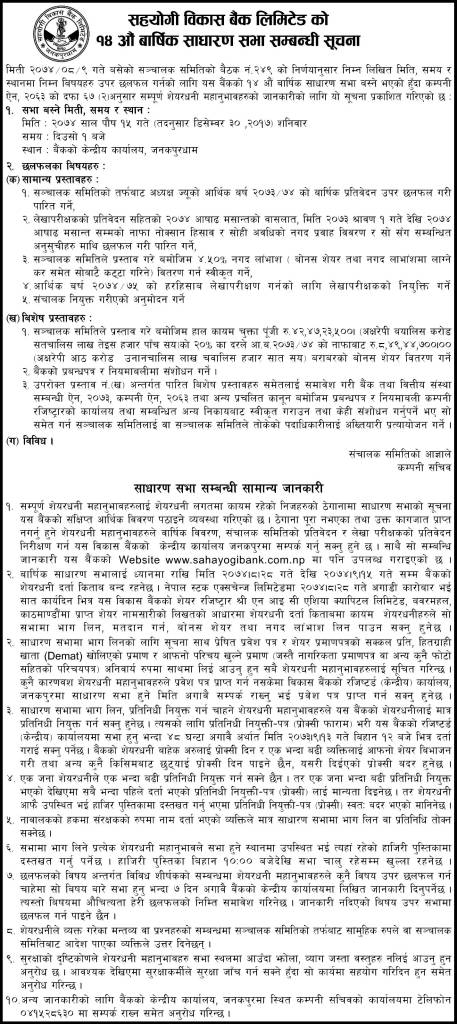 Published by Sahayogi Vikas Bank Ltd. http://swadeshibank.com on 2074-8-29