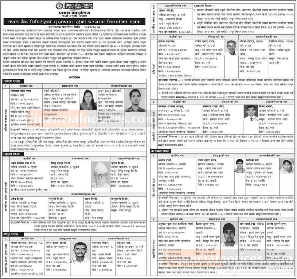 नेपाल बैंकको सुरक्षणमा रहेको घरजग्गा लिलामको सूचना