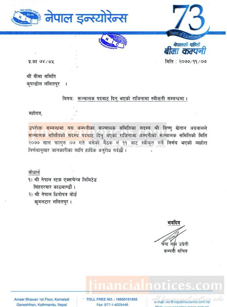 Published by Nepal Insurance Company Official Page on 2077-11-09