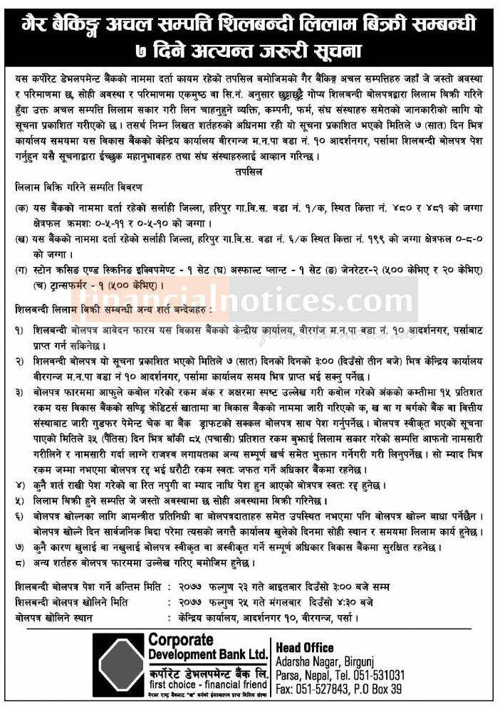 Published by Corporate Development Bank Official Page on 2077-11-17
