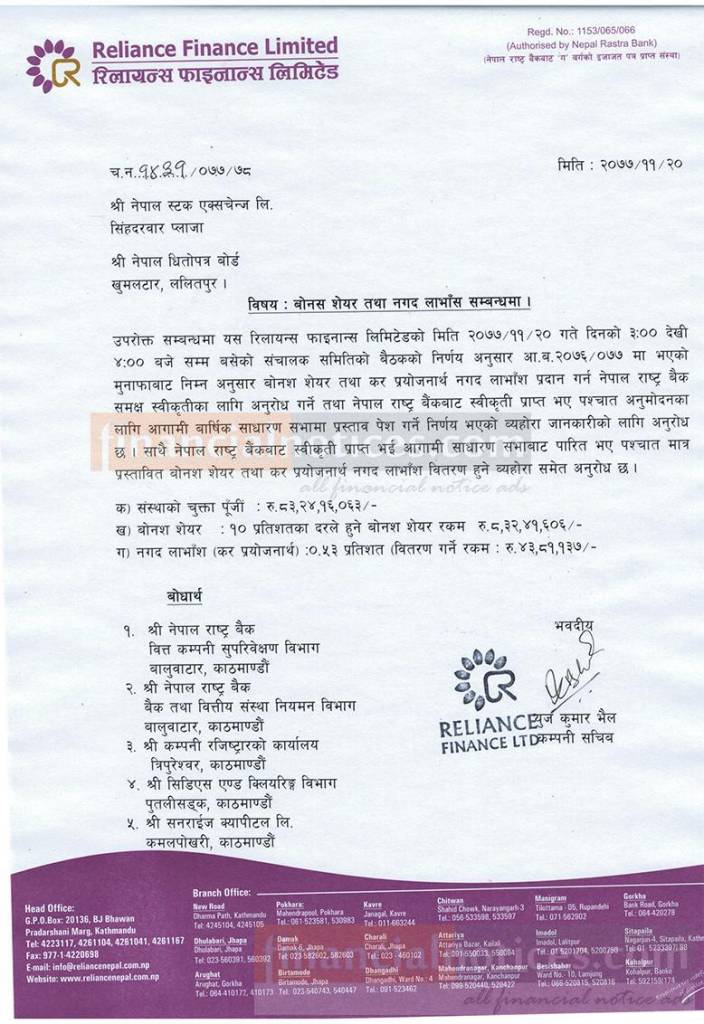 रिलायन्स फाइनान्सको १०.३ % लाभांश घोषणा