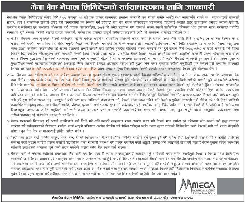 Published by Mega Bank Nayapatrika Daily on 2077-11-25