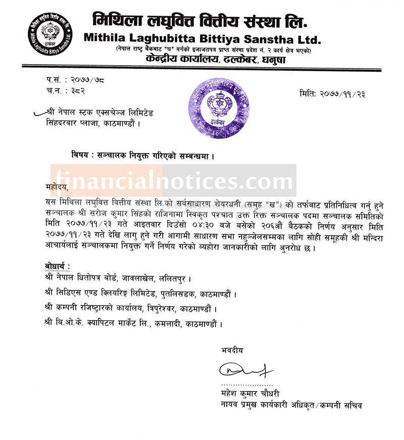 संचालक नियुक्ति बारे सूचना