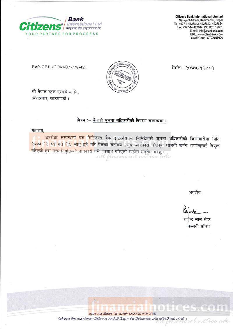 Published by Citizens Bank Int'l official Page on 2077-12-02