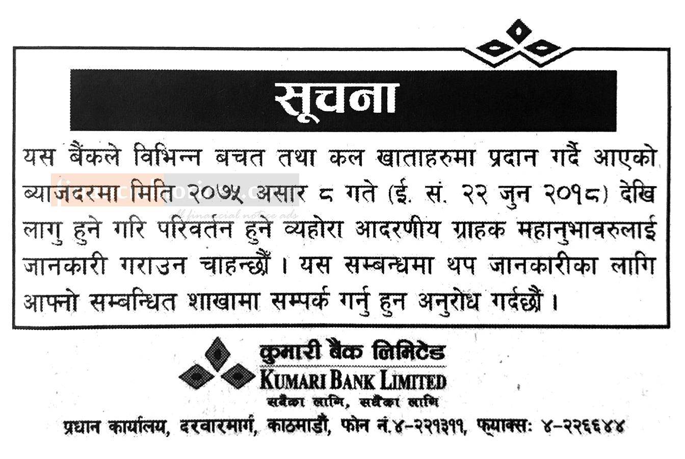 Published by Kumari Bank Ltd (KBL) Karobar Newspaper on 2075-3-11