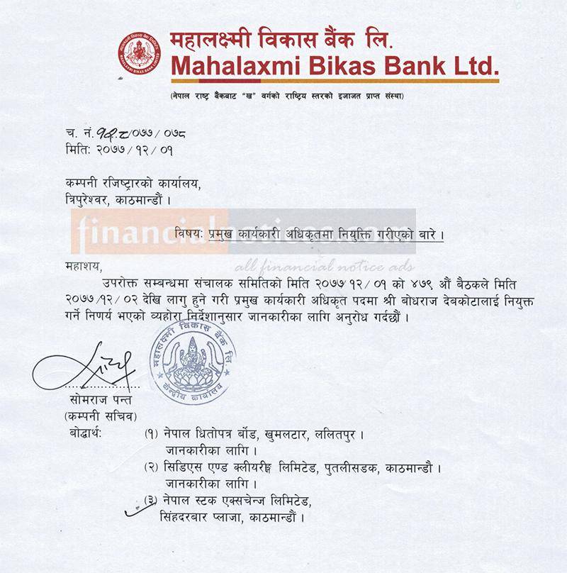 Published by Mahalaxmi Bikas Bank official Page on 2077-12-02