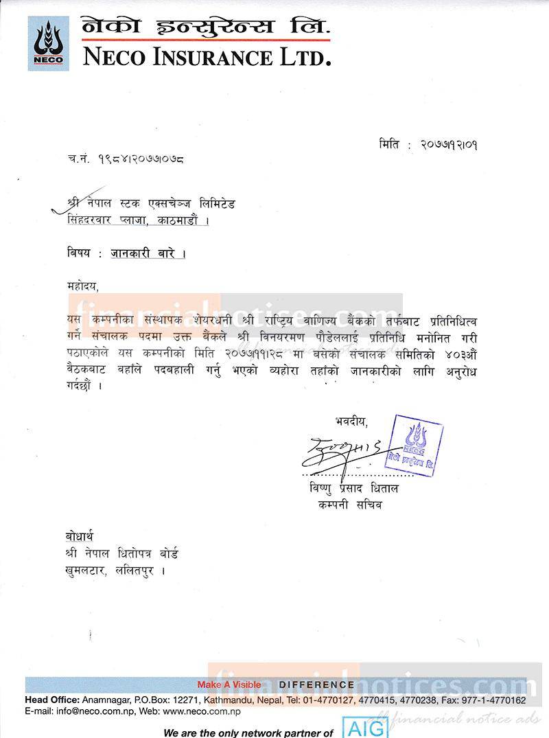 Published by Neco Insurance Ltd. official Page on 2077-12-03