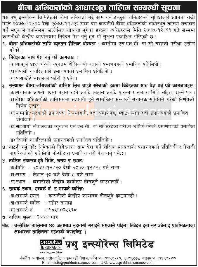 बीमा अभिकर्ताको आधारभुत तालिम सम्बन्धी सूचना