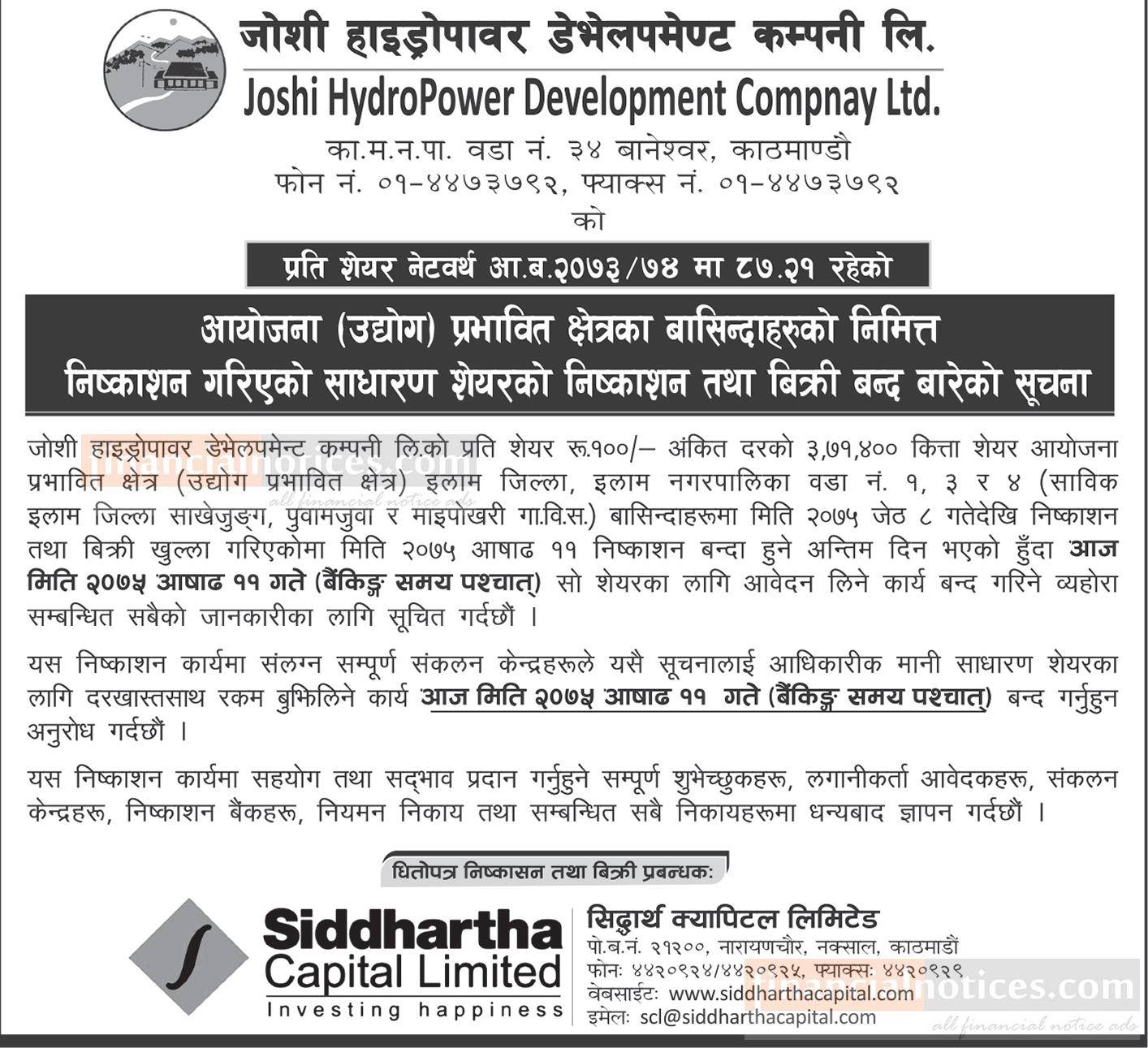 सधारण शेयरको निश्कासन तथा विक्रि बन्द गरिएको सुचना !!!