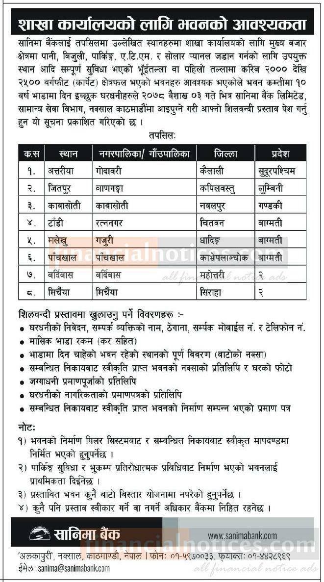 शाखा कार्यालयको लागि भवनको आवश्यकता