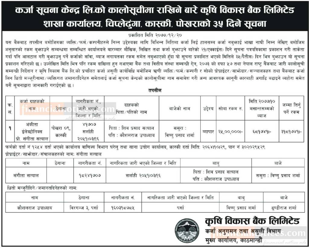 Kumari Bank Auction Notice for Non-Banking Assets at Mahendranagar, Kanchanpur -
