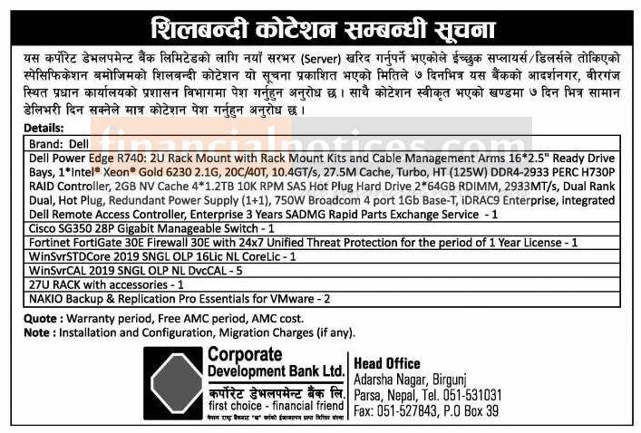 Published by Corporate Development Bank Official Page on 2077-12-23