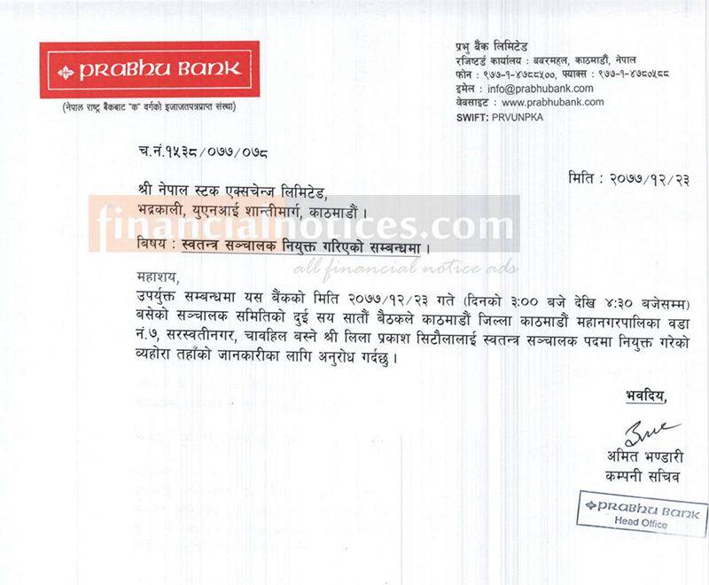 Published by Prabhu Bank official Page on 2077-12-24