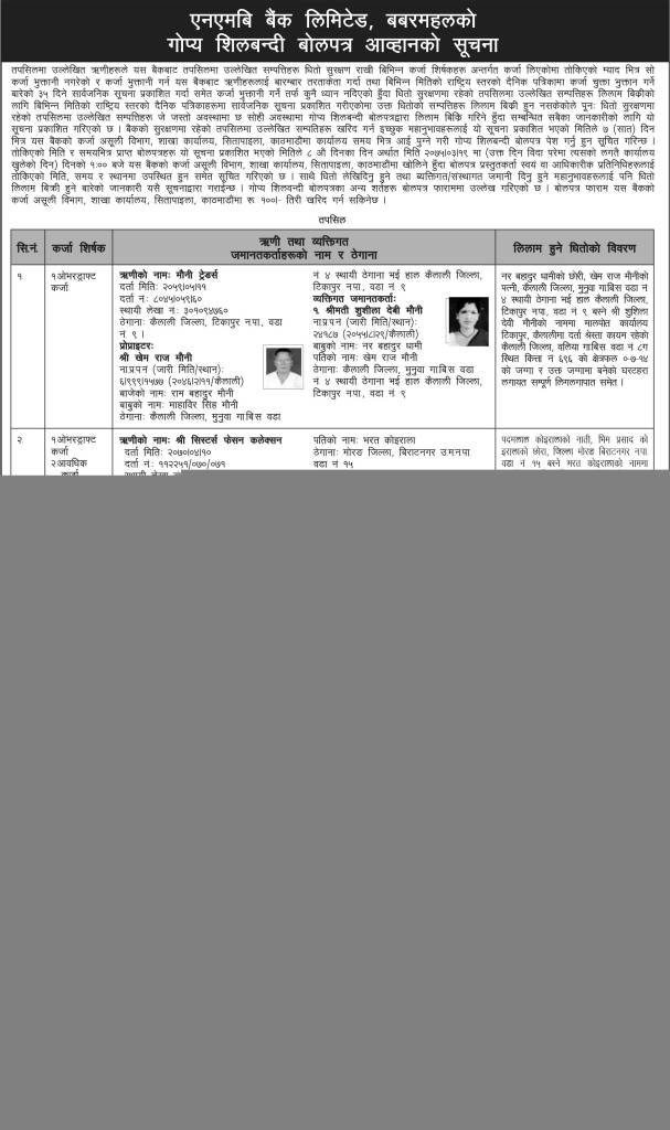 Nepal SBI Bank: Auction Notice for Non-Banking Assets at Geta-2, Kailali