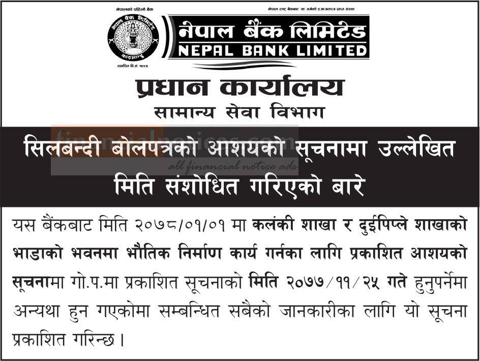 सिलबन्दी बोलपत्रको आशयको सूचनामा उल्लेखित मिति संशोधित गरिएको बारे सूचना