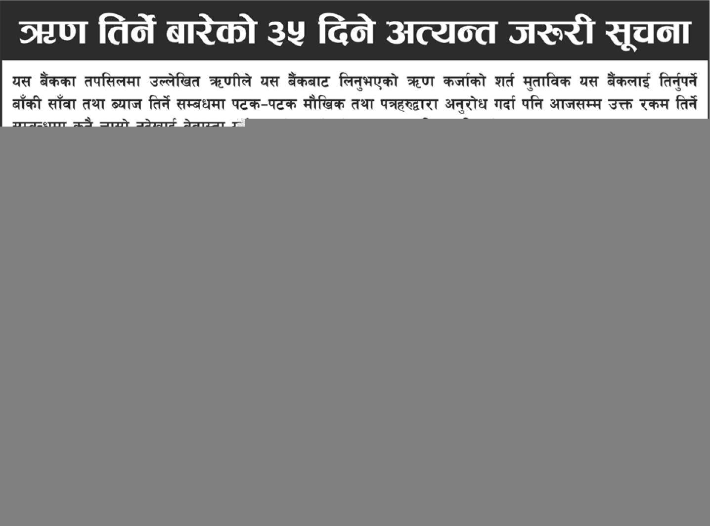 Nepal SBI Bank: Auction Notice for Non-Banking Assets at Geta-2, Kailali
