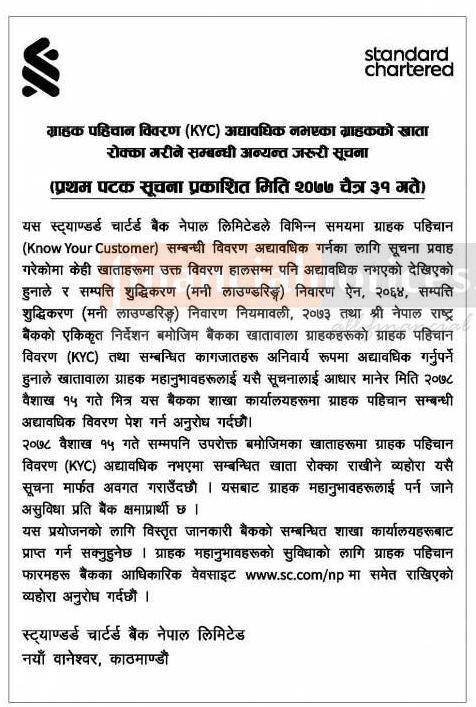 Published by Standard Chartered Bank Official Page on 2078-1-08