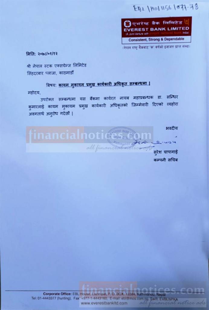 Published by Everest Bank Ltd. Official Page on 2078-1-13
