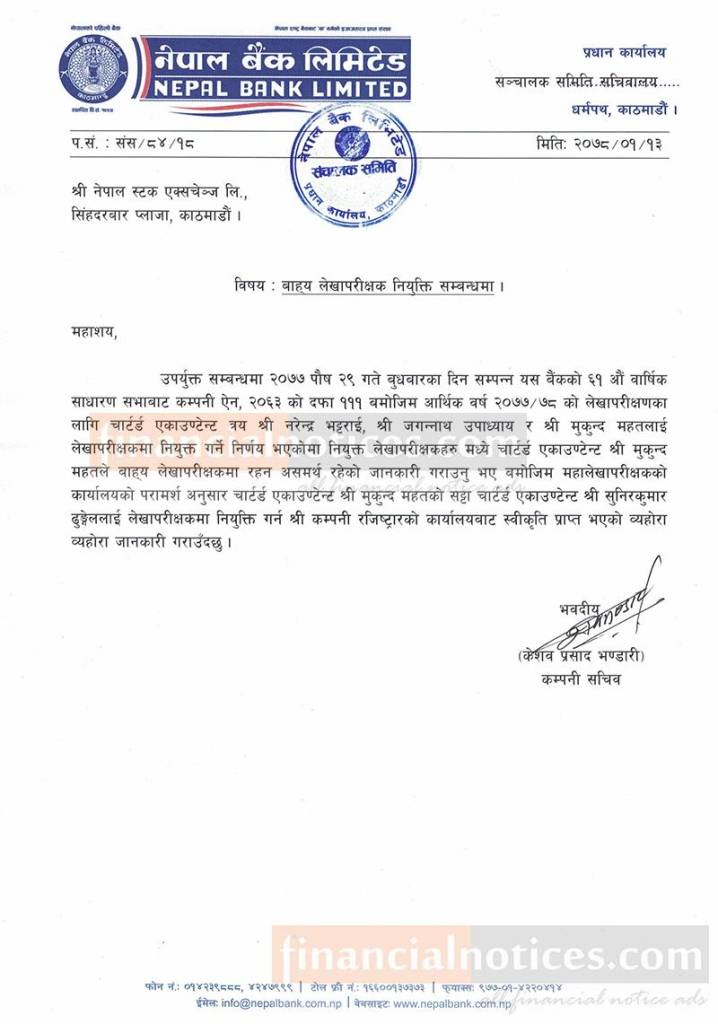 Published by Nepal Bank Limited Official Page on 2078-1-13