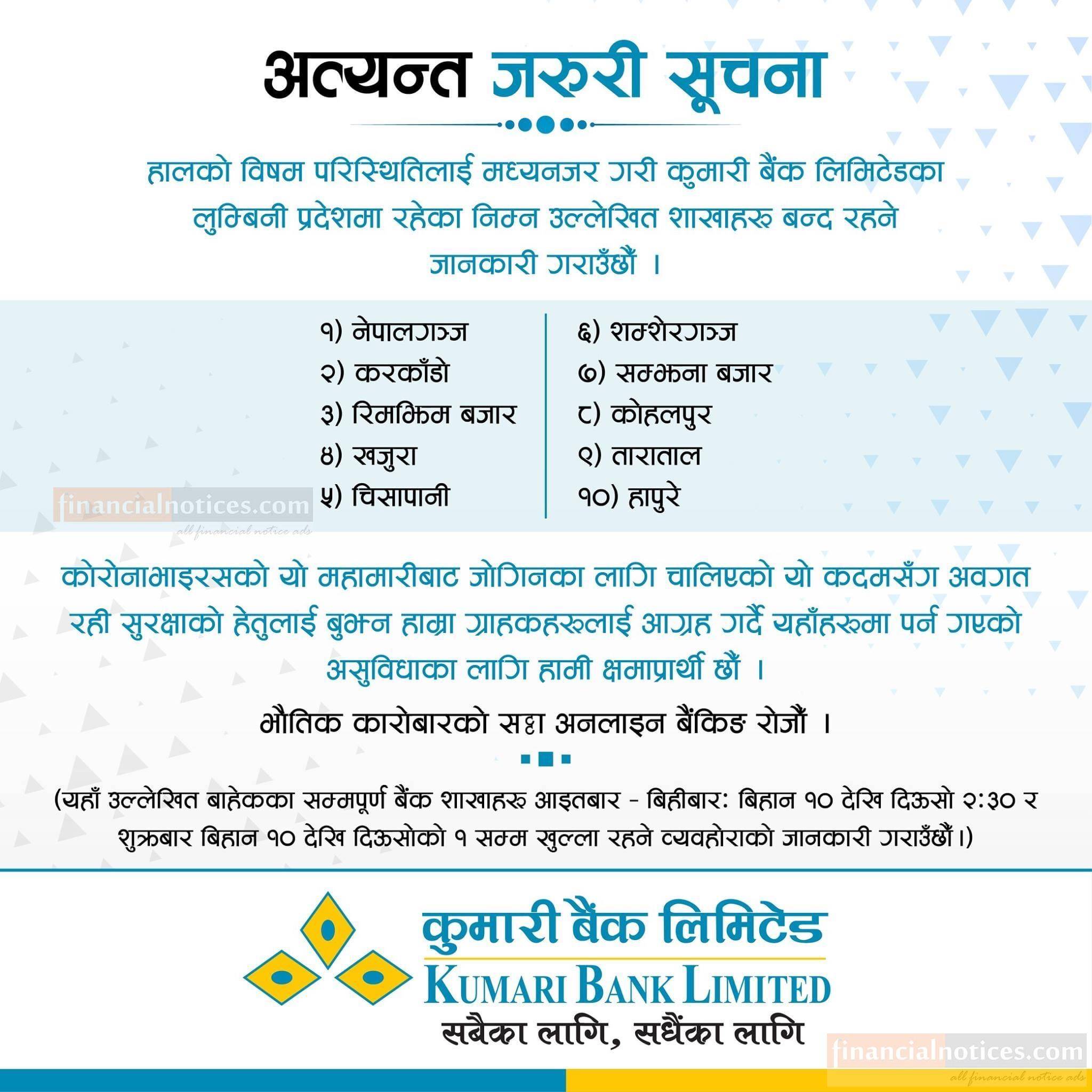 Published by Kumari Bank Ltd (KBL) Official Page on 2078-1-17