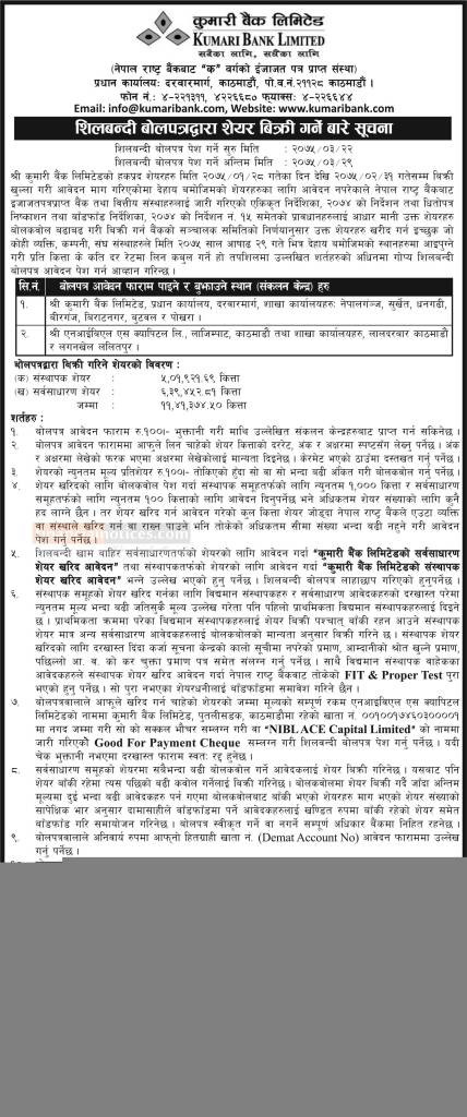 शिलबन्दी बोलपत्रद्धारा शेयर विक्रिको सूचना