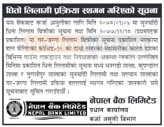 धितो लिलामी प्रक्रिया स्थगन गरिएको सूचना
