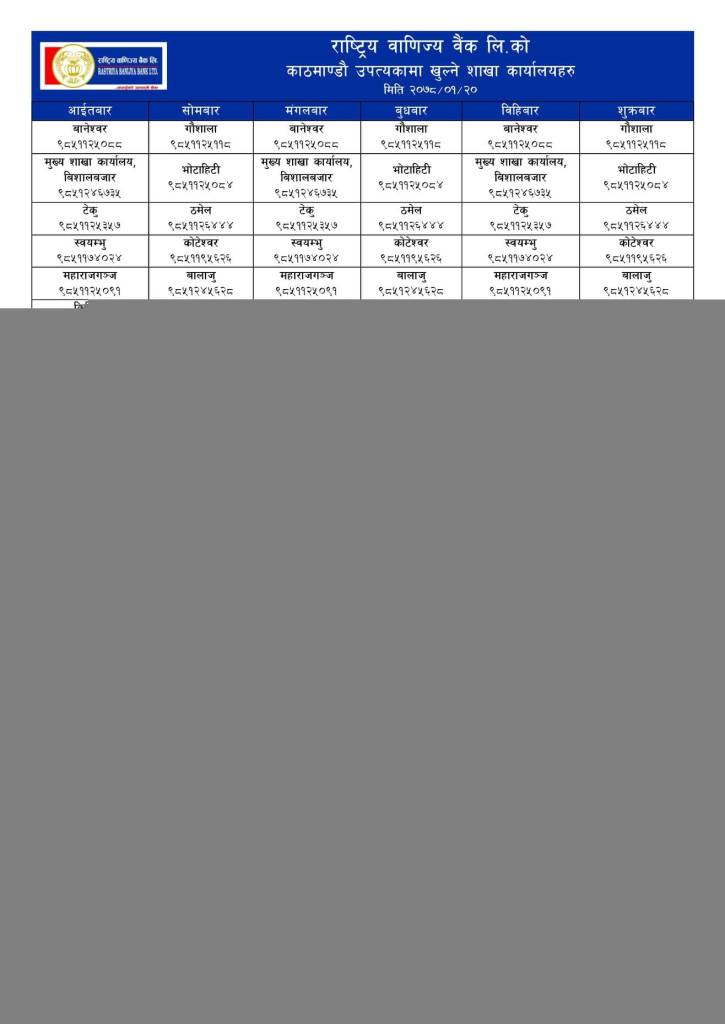 Notice Regarding Branch opening schedule of Kathmandu Valley effecting from 2078-01-20