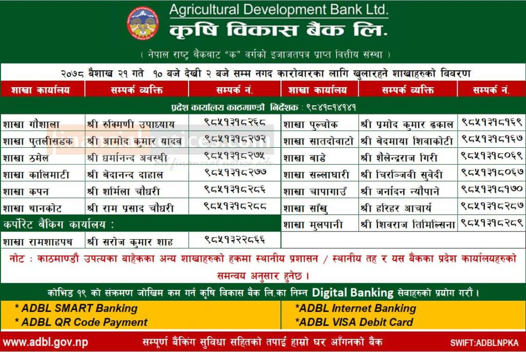 बैशाख २१ गते शाखा कार्यालय खुला रहने बारेको सूचना !