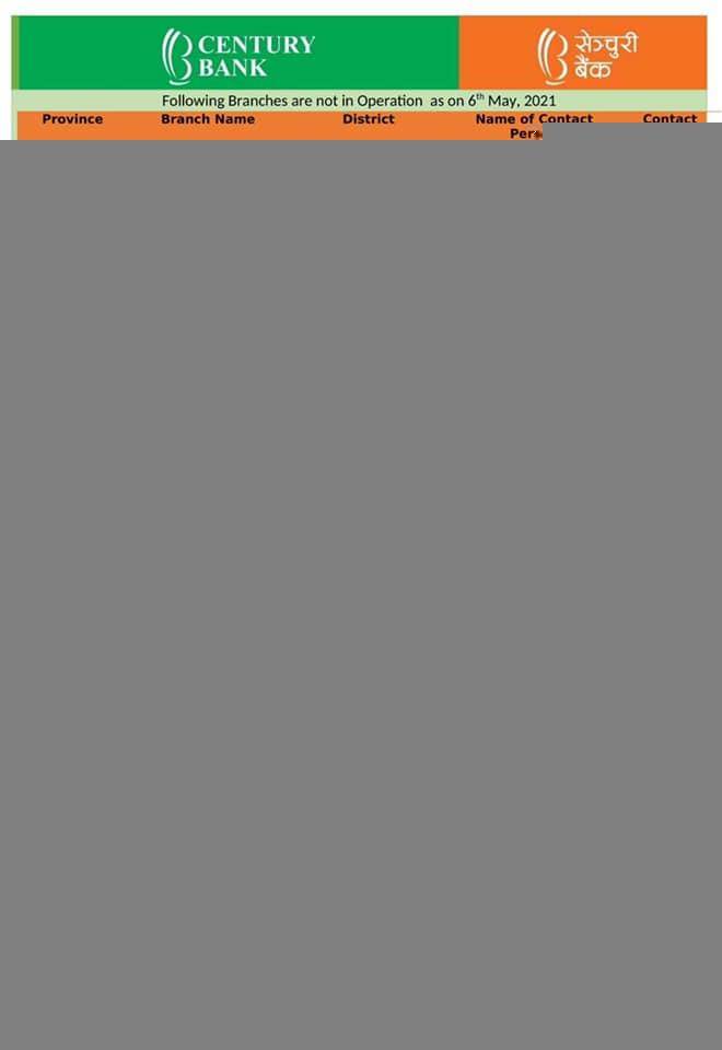 आज खुल्ला नरहने शाखा कार्यालयहरु बारे सेञ्चुरी बैंकको सूचना