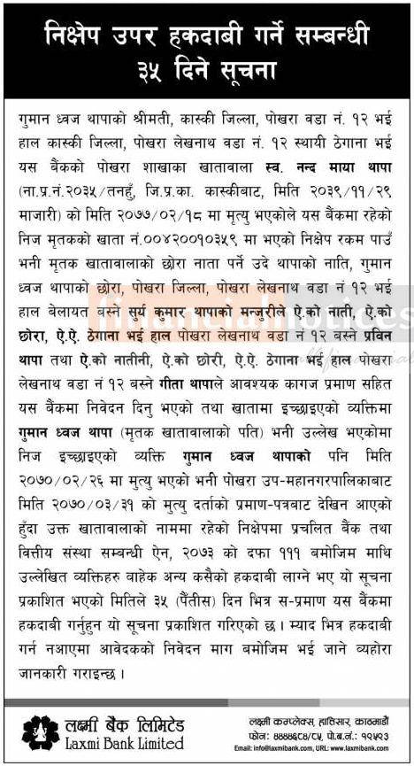 Published by Laxmi Sunrise Bank Abhiyan News Paper on 2078-1-28