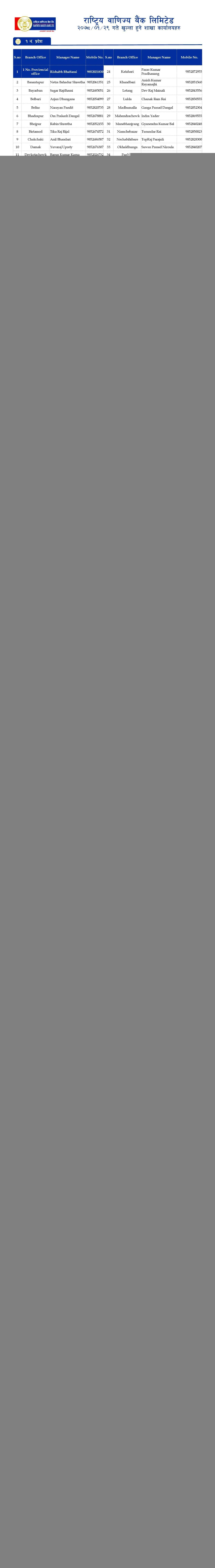 राष्ट्रिय बाणिज्य बैंकको शाखाहरु खुल्ला रहने समय (Province 1-7)