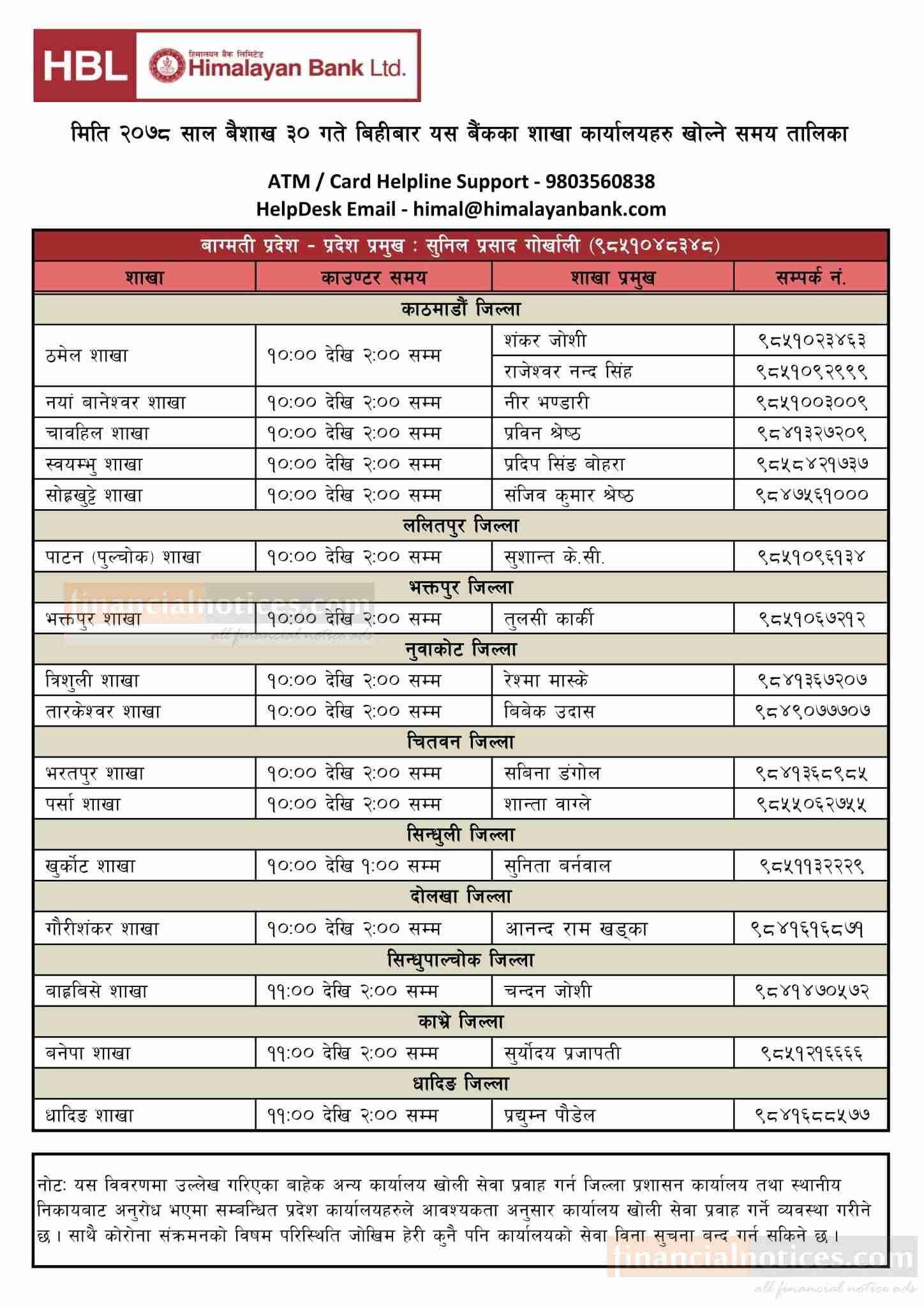 हिमालयन बैंकको ३० गते खुल्ला रहने शाखा समयबारे सूचना