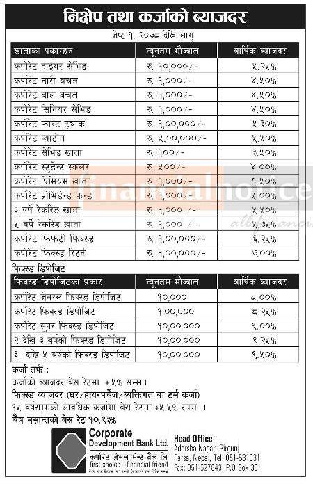 Published by Corporate Development Bank Official Page on 2078-2-01