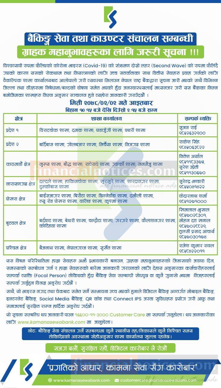 Published by Kamana Sewa Bikas Bank Official Page on 2078-2-02