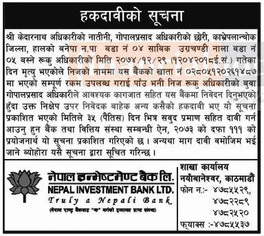 Nepal SBI Bank: Auction Notice for Non-Banking Assets at Geta-2, Kailali
