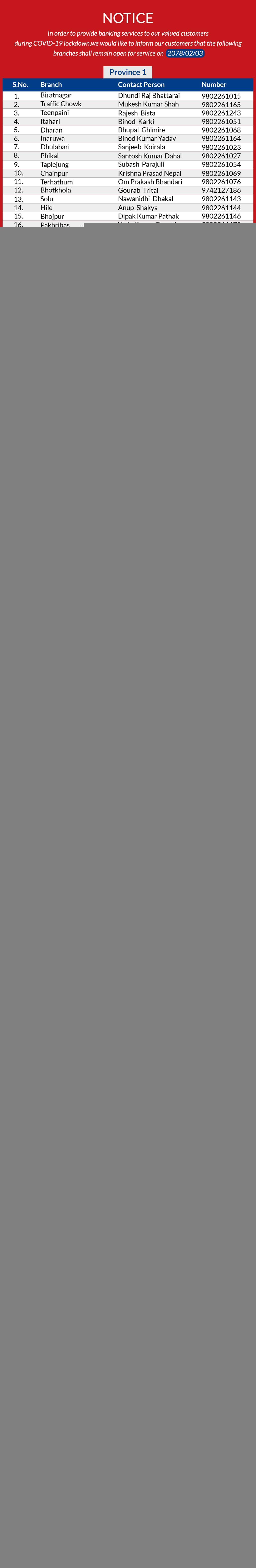 Global IME बैंकको खुल्ला रहने शाखाहरु