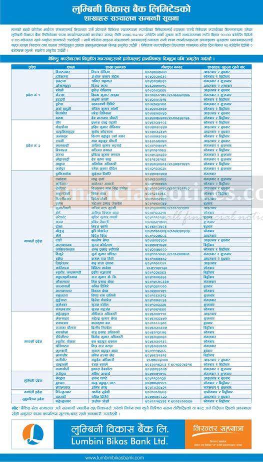लुम्बिनी विकास बैंकको शाखाहरु सञ्चालन सम्बन्धी सूचना
