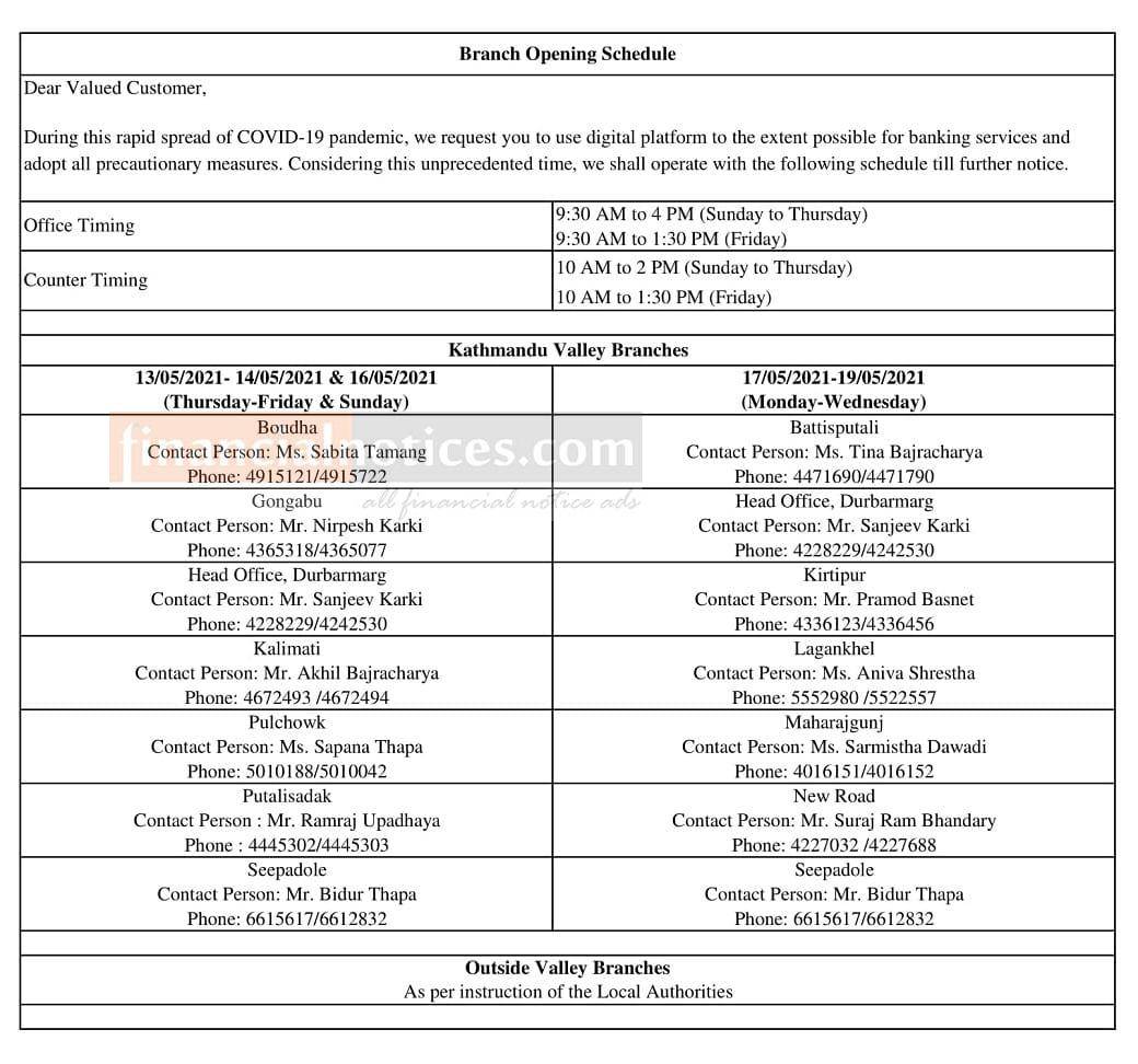 नेपाल इन्भष्टमेण्ट बैंकको खुल्ला रहने शाखाहरु