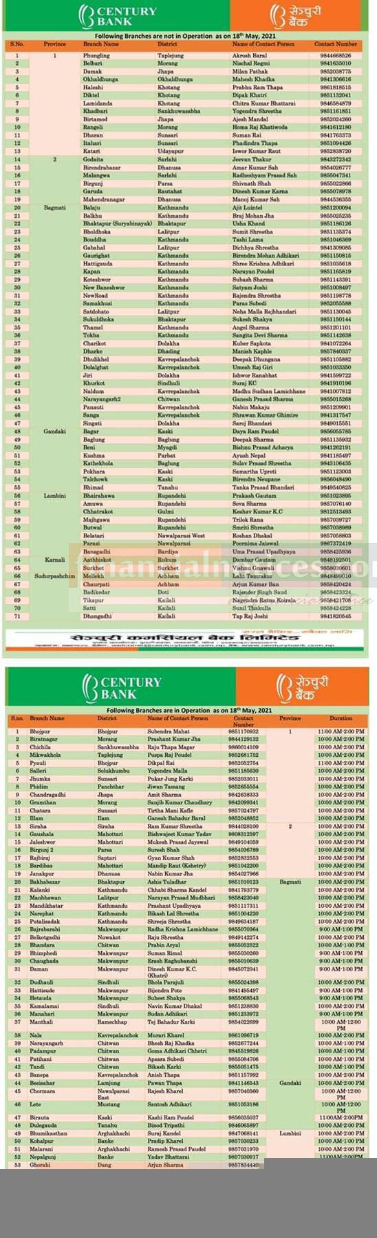 आज खुल्ला नरहने शाखा कार्यालयहरु बारे सेञ्चुरी बैंकको सूचना