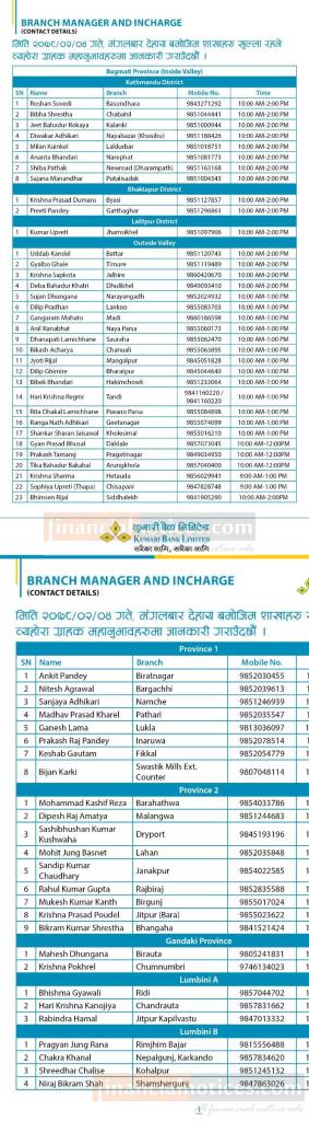 Published by Kumari Bank Ltd (KBL) Official Page on 2078-2-04