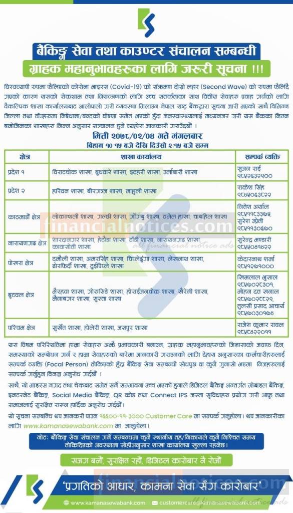 Published by Kamana Sewa Bikas Bank Official Page on 2078-2-04