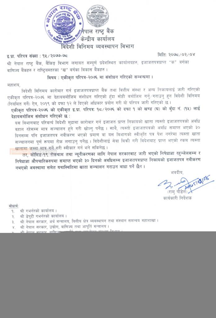 Published by Nepal Rastra Bank Official Page on 2078-2-04