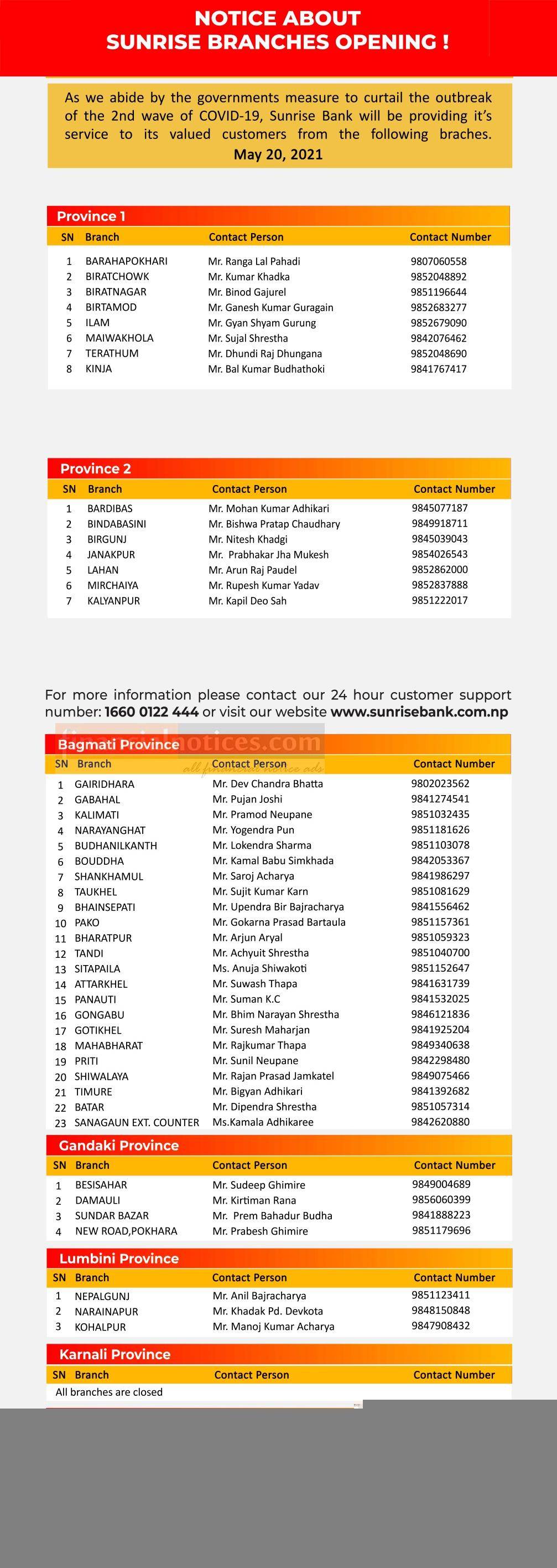 Published by Sunrise Bank Limited Official Page on 2078-2-06