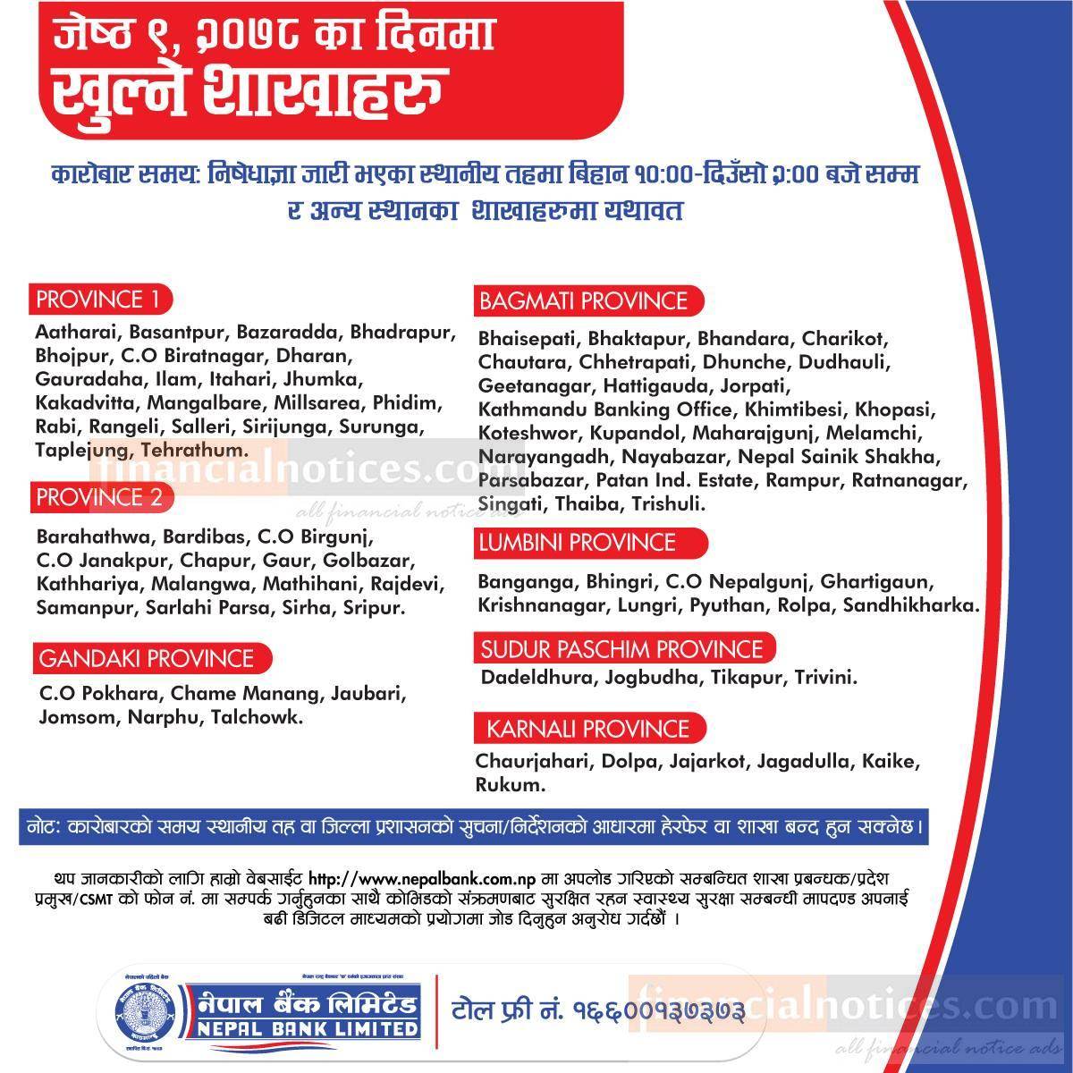 नेपाल बैंकको आज खुल्ला रहने शाखासमयबारे सूचना